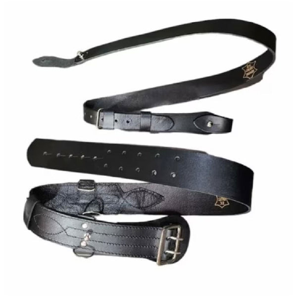 Breadth of SAM BLACK Belt: 2 1/4" (57 mm) BLACK with SILVER-colored fittings One brace and two D rings