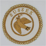This Masonic regalia is a must-have for any Sussex apron badge collector. The set includes a full dress apron badge that is perfect for any Masonic occasion. The badge is crafted with top-class materials and features the iconic Masonic symbol. This regalia is ideal for anyone who is looking to complete their Masonic collection. It is a perfect addition to any collection of aprons and regalia. The badge is made in Pakistan and is sure to impress anyone who sees it. Get your hands on this exclusive Masonic regalia today!